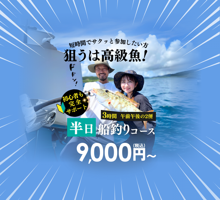石垣島ブルーを眺めながら半日大物釣り体験!船長の完全サポートで初心者も手ぶら参加OK