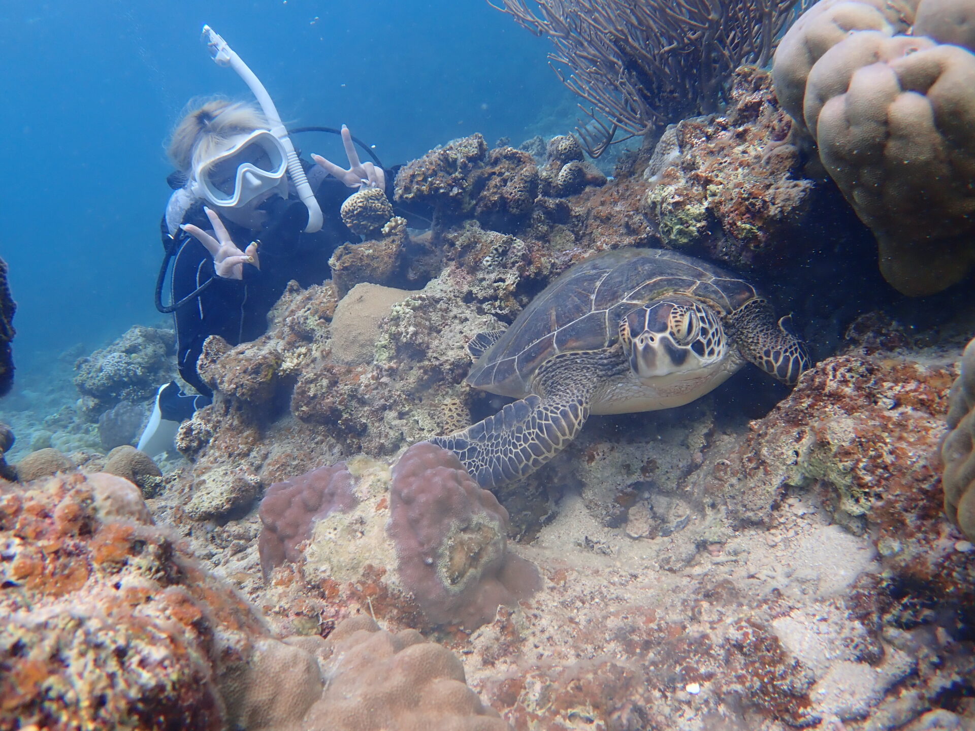 その後、ウミガメに出会えた瞬間は、私たちスタッフも一緒に感動しちゃいました。