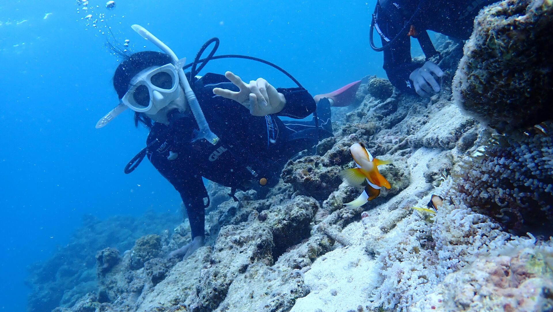 海の透明度はやや落ちたものの、それでも潜った瞬間の美しい水中の世界に感動!