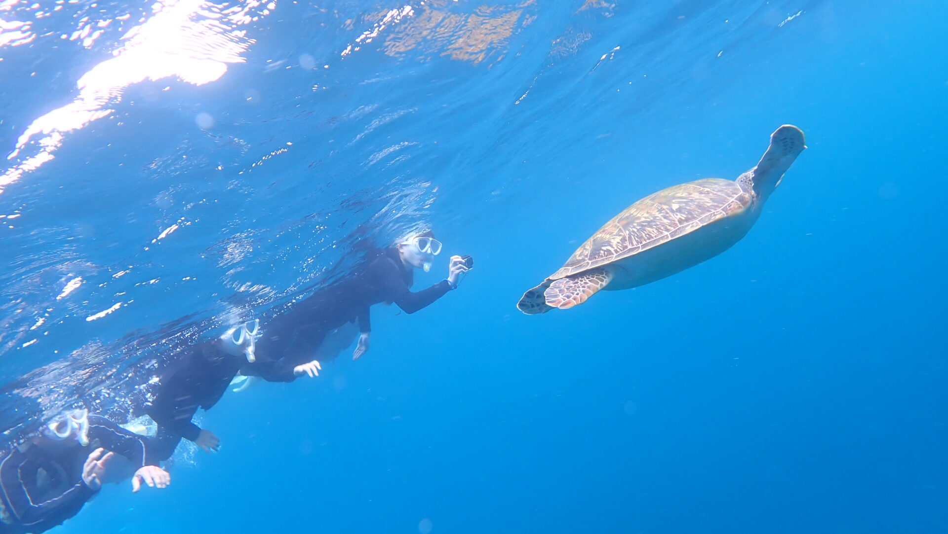最初は不安そうだったお子さんたちも、徐々に自信を持ち始め、ウミガメと一緒に泳げた瞬間には歓声が上がりました。