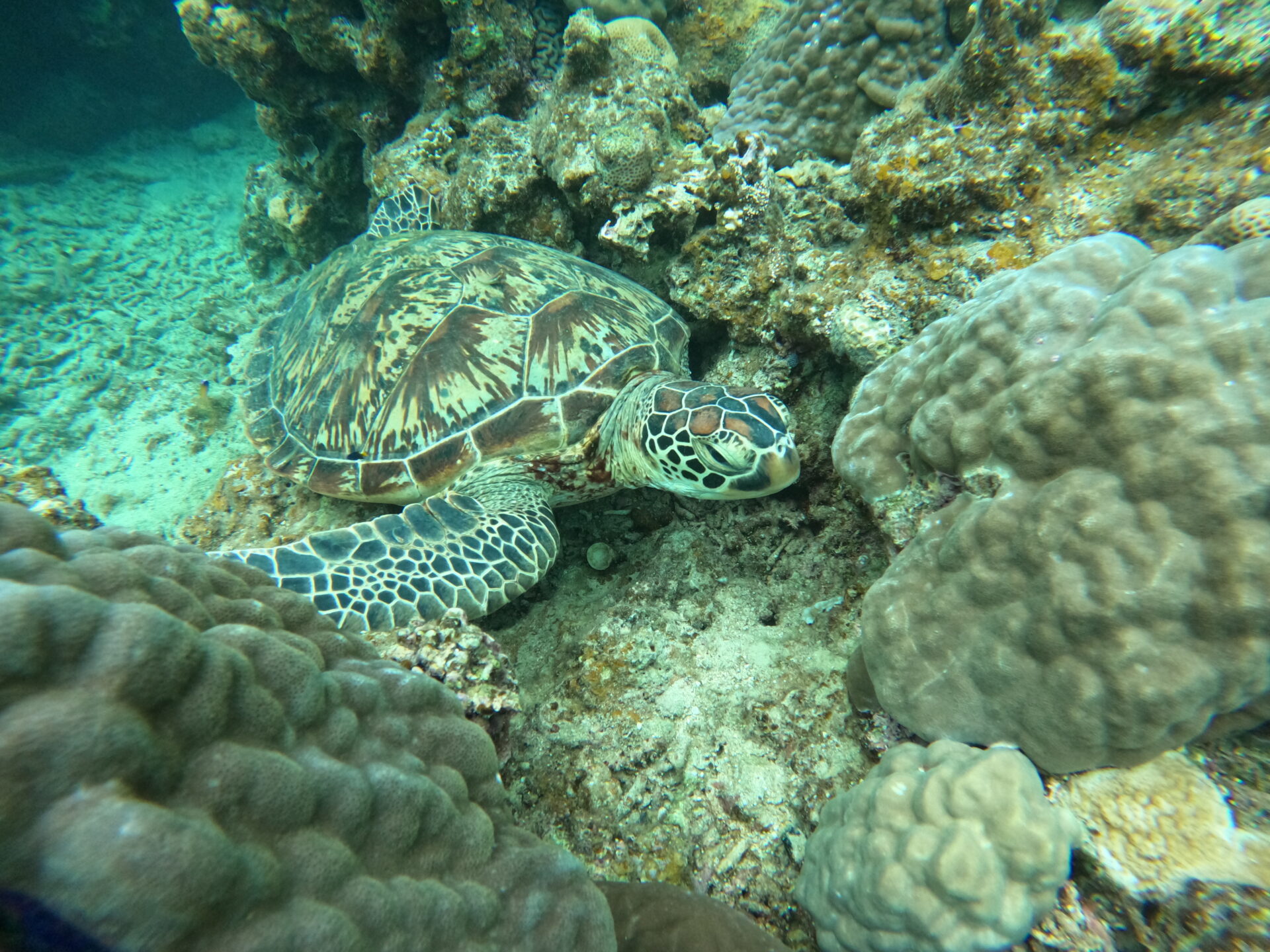 今日の投稿に載せている写真は、ウミガメに遭遇した際に撮影した1枚です。