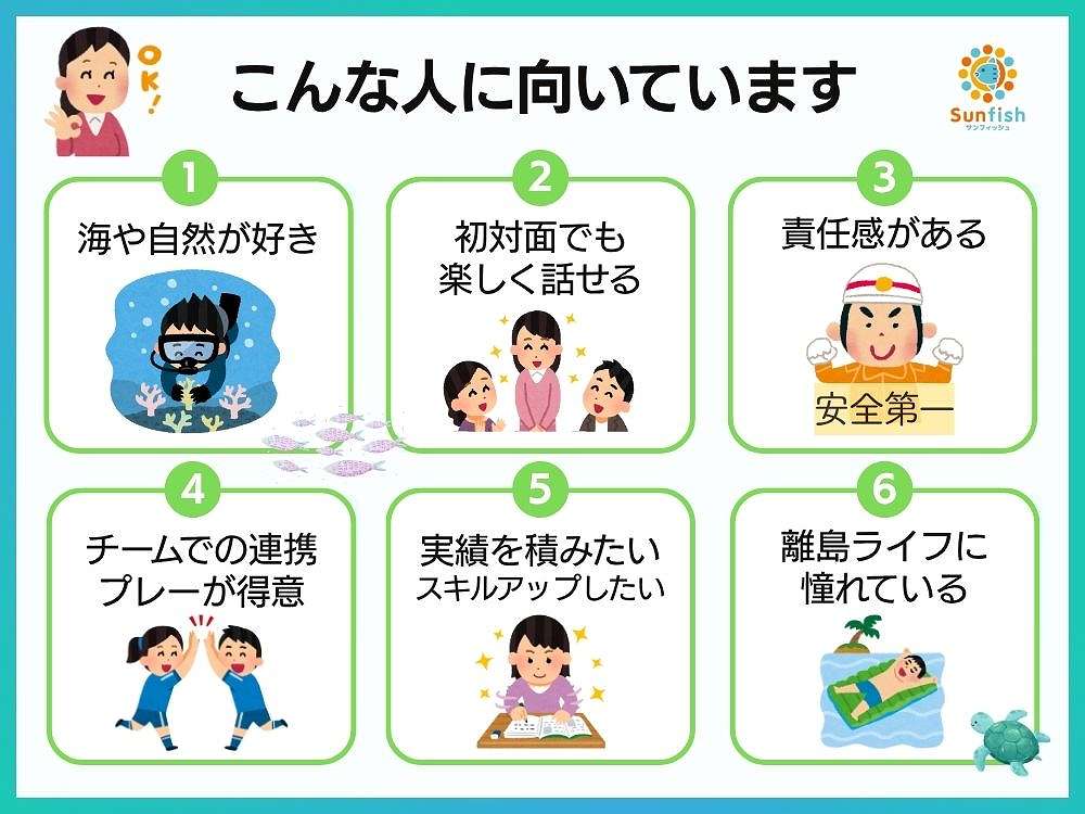 • 海が好き、自然が好き、人と関わるのが好きな方