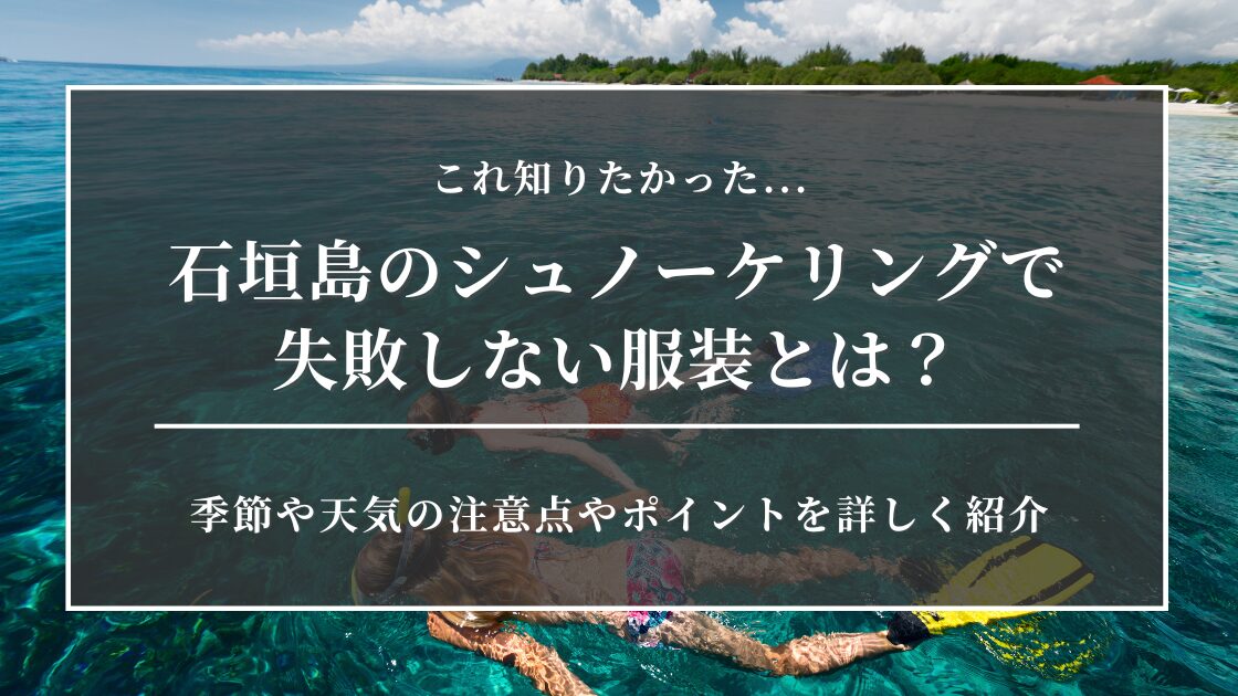 石垣島でシュノーケリングしたいけど、季節ごとに服装って変わるの…? 寒かったり日焼けしたりしたらイヤだな…何を着ればいいのかわからない… 石垣島は1年を通して海に... -